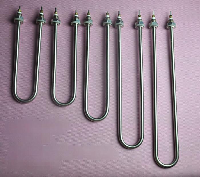 U型電熱管是在無縫金屬管(碳鋼管、鈦管、不銹鋼管、銅管)內(nèi)放入電熱絲,并在空隙部分緊密地填充有良好的導熱性和絕緣性的結晶氧化鎂,電熱絲兩端是通過兩個引出棒與電源相接,空隙部分填滿有良好導熱性和絕緣性的氧化鎂粉后縮管而成,因電熱管彎曲像因為英文字母U所以稱為u型電熱管。