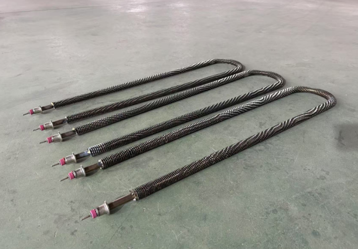 翅片式電加熱管,是在普通元件表面纏繞金屬散熱片,與普通元件相比散熱面積擴(kuò)大了2~3倍,即翅片元件所允許的表面功率負(fù)荷是普通元件的3~4倍。由于元件的長度縮短,使得本身的熱損失減小,在相同的功率條件下具有升溫快、發(fā)熱均勻、散熱性能好、熱效率高、使用壽命長、加熱裝置體積小,成本低等優(yōu)點(diǎn)。根據(jù)用戶要求進(jìn)行了合理的設(shè)計(jì),便于安裝?!‘a(chǎn)品在機(jī)械制造、汽車、紡織、食品、家電等行業(yè),尤其在空調(diào)器風(fēng)幕行業(yè)得到廣泛應(yīng)用。